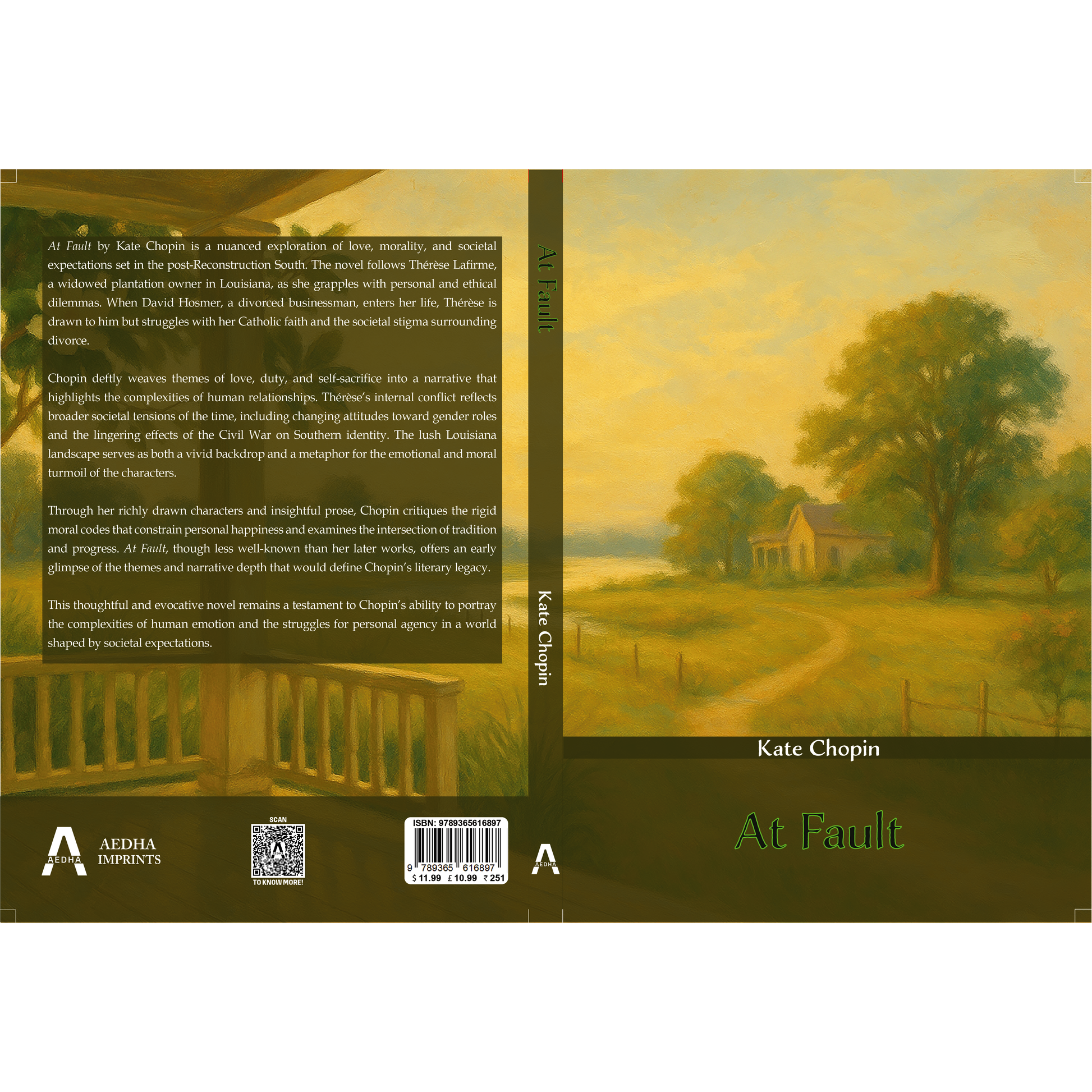 A deeply introspective novel set in post-Reconstruction Louisiana, At Fault explores themes of love, morality, gender roles, and societal pressure through the journey of a widowed plantation owner. Kate Chopin’s early novel showcases her budding literary voice, examining emotional conflict and personal agency. This Aedha Classics paperback edition is thoughtfully designed and made in India—ideal for lovers of feminist literature, historical fiction, and Southern American storytelling.