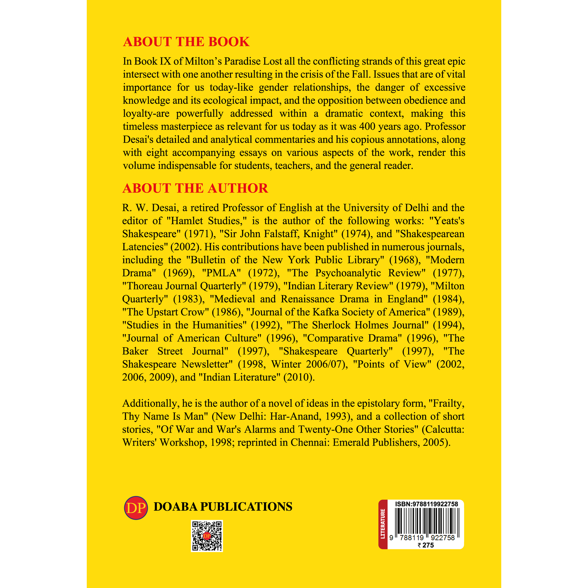 John Milton’s Paradise Lost: Book I & IX is a focused, syllabus-friendly edition of two of the most frequently studied books from Milton’s epic masterpiece. With commentary and notes by R. W. Desai, this volume supports close reading by clarifying Milton’s language, theology, symbolism, and epic technique—especially where classroom discussion and examinations tend to concentrate.